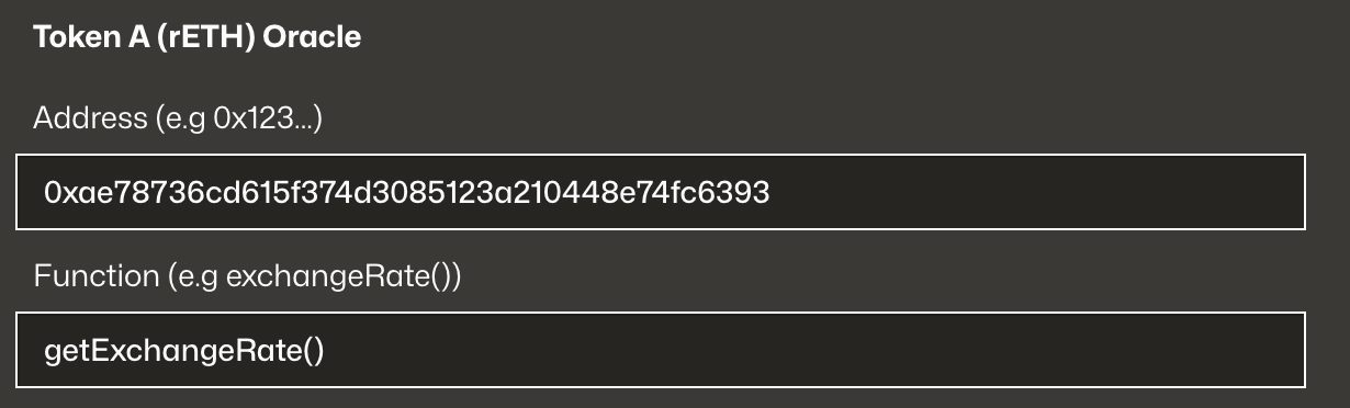 Check the Oracle box if a token requires an external price feed. You'll be asked to enter: