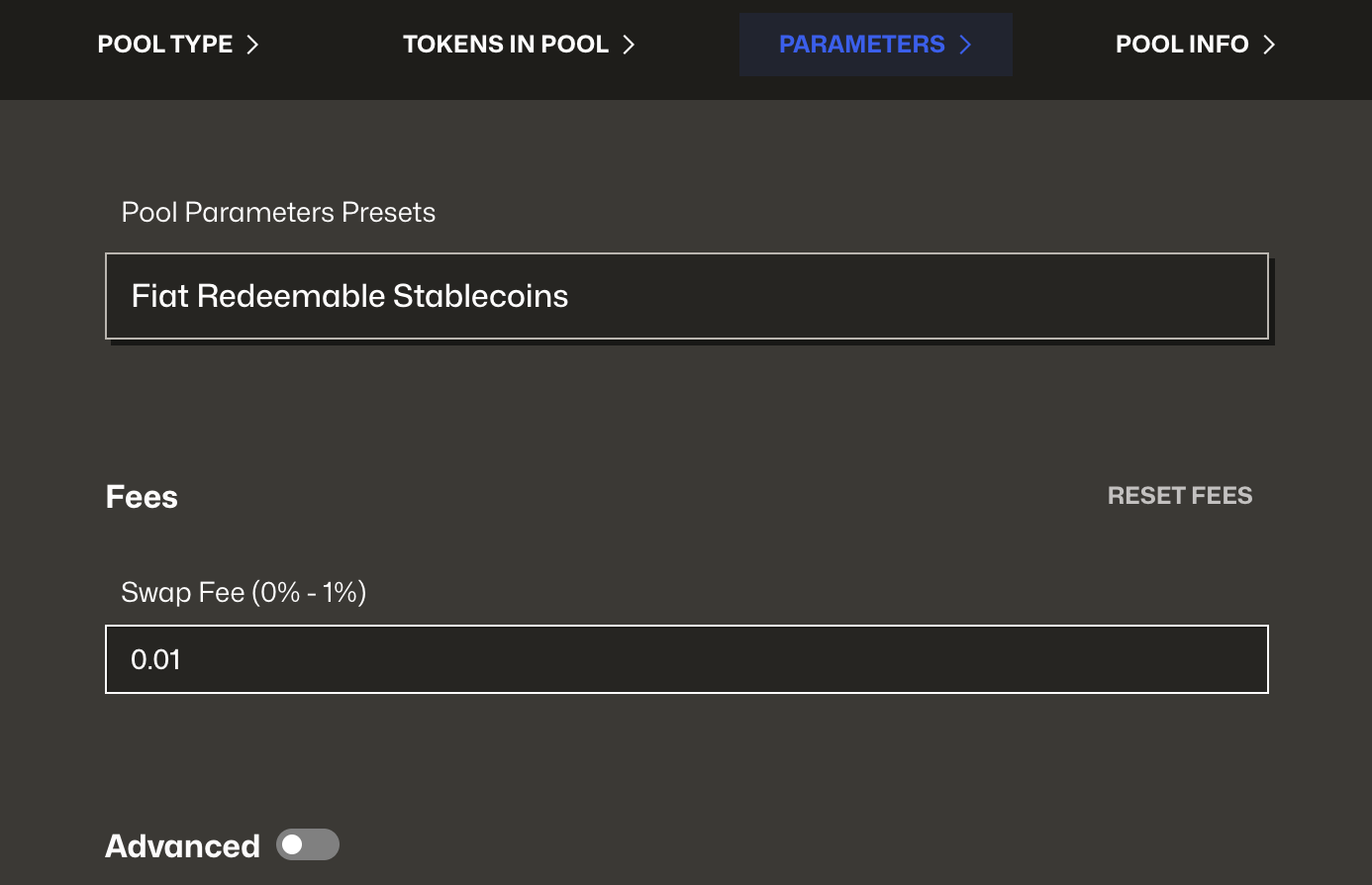 You can choose a preset configuration or switch to advanced mode to fine-tune the pool's behavior.