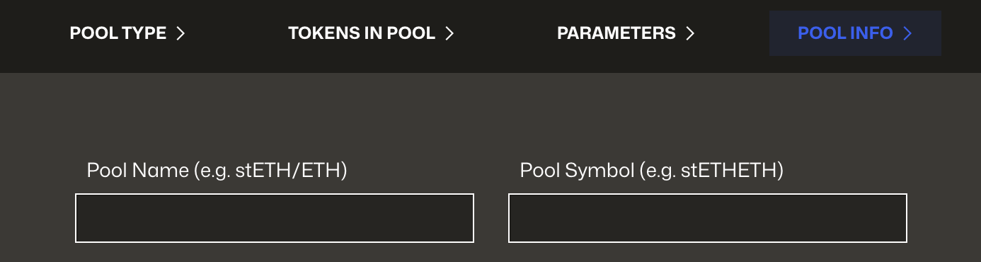 After configuring your parameters, you’ll be prompted to set the Pool Name and Pool Symbol.
