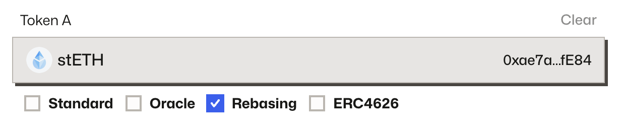 Enable the Rebasing option for tokens whose balances adjust automatically (e.g. stETH). These behave differently from standard ERC‑20s and require special handling in the AMM.