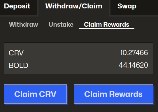 Claim CRV: This will claim onlyCRVrewards.Claim Rewards: This will claim everything except anyCRVrewards.
