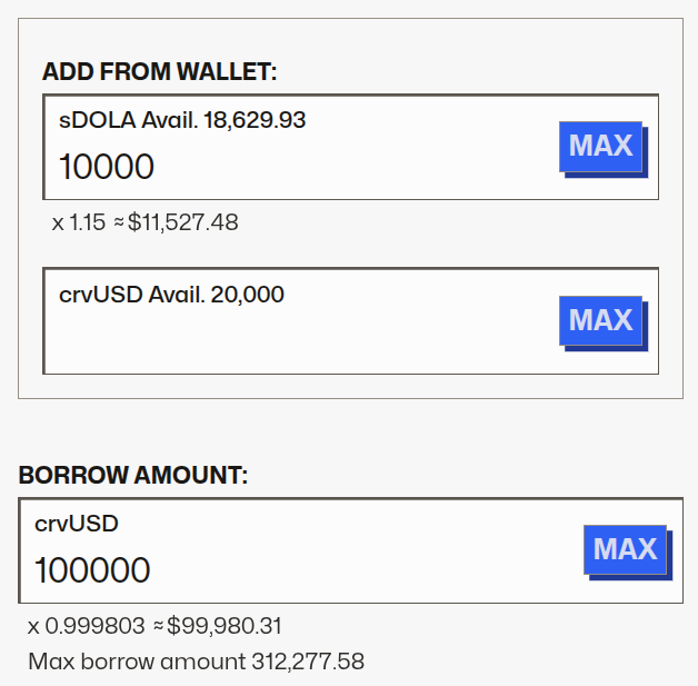 After that, simply select the amount of crvUSD to borrow.