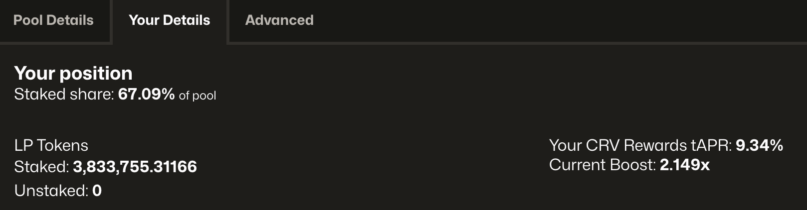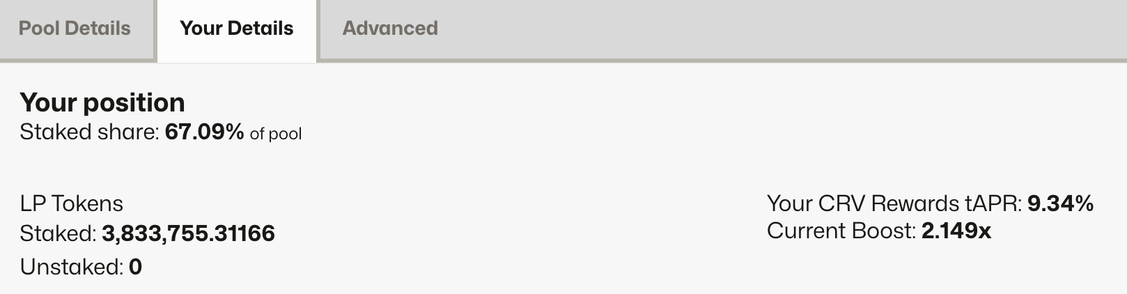 - ⚠️ If the current boost hasn't updated, try claiming CRV from each of the gauges where you have liquidity. This should trigger the boost update.